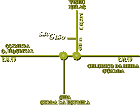 Vindo de Lisboa ou do Porto, na A1, sair em direcção ao IP3 (perto de Coimbra). Depois de viajar cerca de 45 Kms na IP3, virar para a IC12 (Mangualde). Uma vez chegado a Nelas, vindo do IC12, seguir no sentido de Seia. Cerca de 20 Kms após Nelas, encontra-se-á um placard publicitário alusivo ao Queijo São Gião, devendo-se cortar na estrada de terra imediatamente a seguir. |